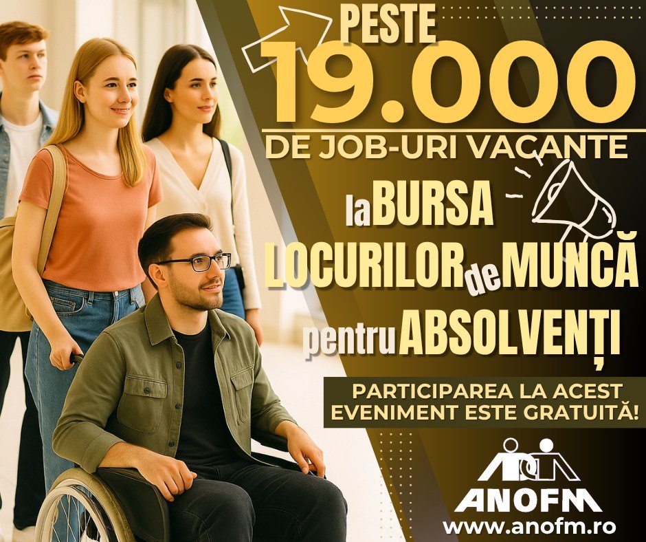 Bursa Locurilor de Muncă pentru Absolvenţi, 10 octombrie 2025 Vineri, 10 octombrie 2025, începând cu ora 10.00 la sediul Agenţiei Judeţene pentru Ocuparea Forţei de Muncă Bistriţa – Năsăud, din Bistriţa, strada Lalelelor, nr.3A se va desfăşura “Bursa Locurilor de Muncă pentru Absolvenţi”. Aceasta are drept scop facilitarea accesului tinerilor la locurile de muncă disponibile […]